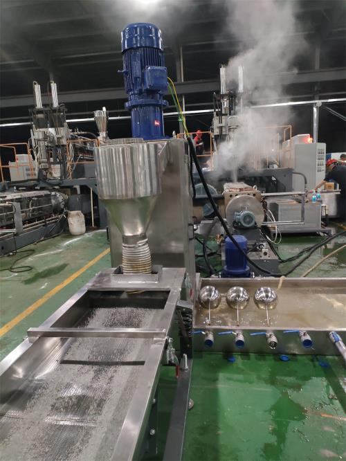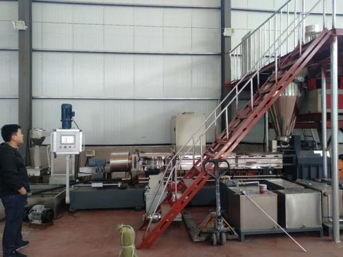 塑料造粒代加工_塑料造粒代加工_佳德塑機JDL-150/150雙階水拉條機組一、系統(tǒng)機組技術參數(shù)Ⅰ、機器顏色:主機為公司標色;電柜為電腦色Ⅱ、造粒工藝:料斗——-JDL-150單螺桿擠出機-----液壓板式換網(wǎng)-----連接體-----圓孔下料-------JDL-150單螺桿擠出機------液壓板式換網(wǎng)-——拉條機頭-----6米不銹鋼水槽-------1臺吹干機------龍門切粒機-----2.5米不銹鋼振動篩------風冷成品料倉----主機控制采用:PLC控制Ⅲ、作業(yè)物料:PE PP 破碎料產(chǎn) 量:350-500公斤/小時(作業(yè)條件不同,產(chǎn)量稍有不同)設備特點::整套設備主機是環(huán)保型;設備不需要接外循環(huán)水系統(tǒng);自帶循環(huán)冷卻統(tǒng)是我公司專利產(chǎn)品,塑料造粒代加工(發(fā)明專利號:CN201911312134.6)1.最大好處:整套0水排放;無水污染;環(huán)保好過2.單螺桿齒輪箱冷卻采用:采用環(huán)保冷卻系統(tǒng)(環(huán)保型:發(fā)明專利號:CN201911312134.6)不需要接外循環(huán)水冷卻,不用徘外水;采用閉環(huán)循環(huán)系統(tǒng),不用擔心長時間使用水冷卻會產(chǎn)生水垢把冷卻器堵住,導致齒輪箱損壞3.單螺桿主機水箱冷卻系統(tǒng)采用:采用環(huán)保冷卻系統(tǒng)(環(huán)保型:發(fā)明專利號:CN201911312134.6)不需要接外循環(huán)水冷卻,不用徘外水;采用閉環(huán)循環(huán)系統(tǒng)4. 不銹鋼水槽:一臺,L=6米,加寬加深,槽體為不銹鋼材質(zhì);水槽與吸干機過度體一件;