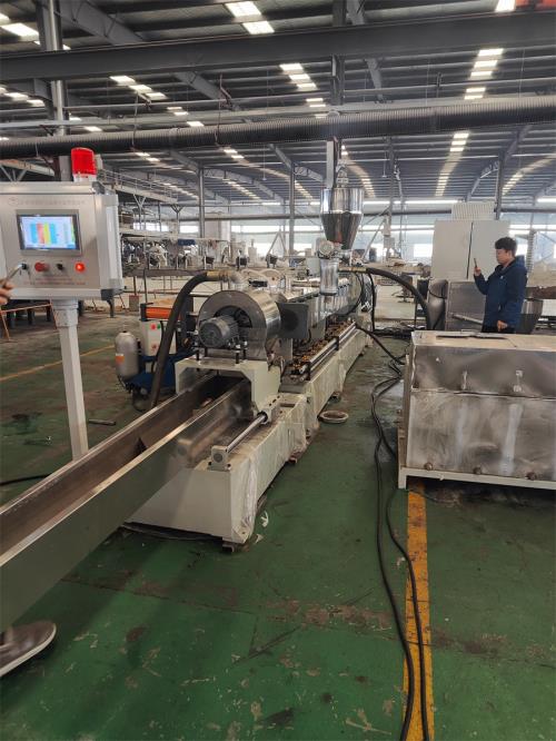 彈性體造粒代加工_彈性體造粒代加工_佳德JDL-65D雙螺桿水環(huán)造粒機組彈性體造粒代加工_彈性體造粒代加工_一、系統(tǒng)機組技術(shù)參數(shù)Ⅰ、機器顏色:主機為公司標(biāo)色;電柜為電腦色Ⅱ、造粒工藝:雙螺桿計量式喂料——-JDL-65D雙螺桿擠出機----——液壓板式換網(wǎng)——水環(huán)熱切模頭------水泵-----離心脫水機------2.5米加長振動篩-----風(fēng)冷成品料倉----- -主機采用:PLC控制Ⅲ、作業(yè)物料:TPE料 產(chǎn) 量:200-250公斤/小時(作業(yè)條件不同,產(chǎn)量稍有不同)彈性體造粒代加工_彈性體造粒代加工_客戶為何購買我們設(shè)備,我們價位在行業(yè)屬于中低價格,我們設(shè)備能給客戶帶來哪里利益,我們設(shè)備能給用戶帶來以下利益:1.特點:這套設(shè)備主機是環(huán)保型;主機設(shè)備不需要接外循環(huán)水系統(tǒng);自帶循環(huán)冷卻統(tǒng)是我公司專利產(chǎn)品,2.雙螺桿齒輪箱冷卻采用:采用環(huán)保冷卻系統(tǒng)(環(huán)保型:發(fā)明專利號:CN201911312134.6)不需要接外循環(huán)水冷卻,不用徘外水;采用閉環(huán)循環(huán)系統(tǒng),不用擔(dān)心長時間使用水冷卻會產(chǎn)生水垢把冷卻器堵住,導(dǎo)致齒輪箱損壞3.雙螺桿主機水箱冷卻系統(tǒng)采用:采用環(huán)保冷卻系統(tǒng)(環(huán)保型:發(fā)明專利號:CN201911312134.6)不需要接外循環(huán)水冷卻,不用徘外水;采用閉環(huán)循環(huán)系統(tǒng)4.水循環(huán)真空泵,電機功率:2.2KW,真空泵采用環(huán)保冷卻系統(tǒng)(環(huán)保型:發(fā)明專利號:CN201911312115.3)不需要接外循環(huán)水冷卻,采用閉環(huán)循環(huán)系統(tǒng)5.節(jié)能:普通筒體筒體冷卻;例如:第5區(qū)溫度超高;這是電子閥導(dǎo)通;第5區(qū)冷卻回水就會影響第六區(qū)和第四區(qū)的溫度下降;就會導(dǎo)致第四六區(qū)加溫;這種情況會一直循環(huán)出現(xiàn);導(dǎo)致電費浪費;我們現(xiàn)在采用環(huán)保型就徹底解決這個問題;加我們委托第三方開發(fā)溫控模塊,溫控加熱系統(tǒng)比同類設(shè)備節(jié)能:10-20%電費,就是每噸能為客戶節(jié)省電費10元,每年大概能節(jié)約電費3萬6.雙螺桿齒輪箱采用高扭:D型齒輪箱