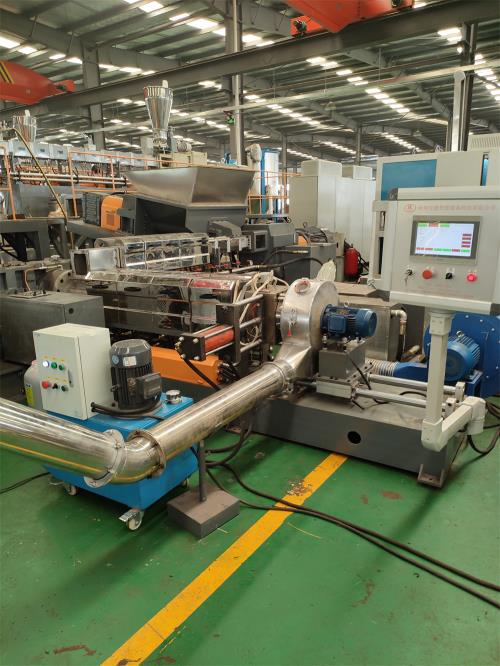 最大好處:主機0水排放;無水污染;環(huán)保好過2.雙螺桿齒輪箱冷卻采用:采用環(huán)保冷卻系統(tǒng)(環(huán)保型:發(fā)明專利號:CN201911312134.6)不需要接外循環(huán)水冷卻,不用徘外水;采用閉環(huán)循環(huán)系統(tǒng),不用擔(dān)心長時間使用水冷卻會產(chǎn)生水垢把冷卻器堵住,導(dǎo)致齒輪箱損壞3.雙階主機水箱冷卻系統(tǒng)采用:采用環(huán)保冷卻系統(tǒng)(環(huán)保型:公司發(fā)明專利號:CN201911312134.6)無鹵電纜料造粒機不需要接外循環(huán)水冷卻,不用徘外水;采用閉環(huán)循環(huán)系統(tǒng)4.單螺桿主機水箱冷卻系統(tǒng)采用:采用環(huán)保冷卻系統(tǒng)(環(huán)保型:公司發(fā)明專利號:CN201911312134.6)不需要接外循環(huán)水冷卻,不用徘外水;采用閉環(huán)循環(huán)系統(tǒng)5. 節(jié)能:普通筒體筒體冷卻;例如:第5區(qū)溫度超高;這是電子閥導(dǎo)通;第5區(qū)冷卻回水就會影響第六區(qū)和第四區(qū)的溫度下降;就會導(dǎo)致第四六區(qū)加溫;這種情況會一直循環(huán)出現(xiàn);導(dǎo)致電費浪費;我們現(xiàn)在采用環(huán)保型就徹底解決這個問題;我們設(shè)備比同類設(shè)備節(jié)能:10-15%電費6.減少成本:水池尺寸:3米*3米*2.5米冷卻水池;60立方冷卻水塔及4KW高壓水泵2臺及管道,6天水管施工,大概能節(jié)約成本:12萬左右二. 技術(shù)配置(二)自動翻斗提升機:參數(shù)為1、上料電機功率:2.2kw;無鹵電纜料造粒機提升料斗為不銹鋼材質(zhì),需滿足300kg/鍋,確保安全。2、將捏煉機捏煉后的團(tuán)狀物料輸送至錐雙喂料機內(nèi)。外觀要求:電機和鏈條處等傳動處有整體保護(hù)罩。(三)錐雙強制喂料機:一臺1)電機功率:11kw,采用“三晶或羅賓漢”,變頻調(diào)速器。喂料螺桿:錐形雙螺桿強制下料,氮化鍍鉻處理,表面光潔度高。喂料體:內(nèi)表面拋光、鍍硬鉻處理,光潔耐磨。2)喂料斗:內(nèi)表面拋光、鍍硬鉻處理,光潔耐磨;采用鎖扣式安裝防護(hù)罩,要求便于更換和維修保養(yǎng)。可推拉式,方便移動。3) 錐雙喂料機與雙螺桿連接(四)
