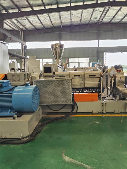 不需要接外循環(huán)水冷卻,不用徘外水;PVC造粒機_PVC電纜料造粒機_佳德采用閉環(huán)循環(huán)系統(tǒng),不用擔心長時間使用水冷卻會產生水垢把冷卻器堵住,導致齒輪箱損壞4.雙階主機水箱冷卻系統(tǒng)采用:采用環(huán)保冷卻系統(tǒng)(環(huán)保型:發(fā)明專利號:CN201911312134.6)不需要接外循環(huán)水冷卻,不用徘外水;采用閉環(huán)循環(huán)系統(tǒng)5.節(jié)能:普通筒體筒體冷卻;例如:第5區(qū)溫度超高;這是電子閥導通;第5區(qū)冷卻回水就會影響第六區(qū)和第四區(qū)的溫度下降;就會導致第四六區(qū)加溫;這種情況會一直循環(huán)出現(xiàn);導致電費浪費;我們現(xiàn)在采用環(huán)保型就徹底解決這個問題;加我們委托第三方開發(fā)溫控模塊,溫控加熱系統(tǒng)比同類設備節(jié)能:10-20%電費,就是每噸能為客戶節(jié)省電費10元,每年大概能節(jié)約電費3萬6.雙螺桿齒輪箱采用高扭:D型齒輪箱換網器通水冷卻8.減少成本:水池尺寸:2米*3米*2.5米冷卻水池;60立方冷卻水塔及4KW高壓水泵2臺及管道,6天水管施工:大概能節(jié)約成本:12萬二. 技術配置(一)雙螺桿主喂料系統(tǒng) 1) 雙螺桿主喂料機:功率:1.5kw三晶,變頻調速器;料斗不銹鋼料斗(二)PVC造粒機_PVC電纜料造粒機_佳德JDL-75D雙螺桿擠出機1、高扭D型減速箱,減速及扭矩分配部分合為一體,結構緊湊;輸出軸轉速:500rpm;輸入軸轉速:1480rpm;滾針軸承選擇日本“IKO”,軸承減速扭矩分配系統(tǒng)的徑向軸承均為日本NSK軸承;齒輪采用優(yōu)質合金材料,精度按ISO1328-1995圓柱齒輪精度制造,齒輪全部采用滲碳淬火硬齒面。采用專用磨齒軟件對齒輪進行齒廓修整,保證齒輪強度,齒向載荷均勻,強度高,噪音低,振動低;潤滑油型號為:150#中負荷齒輪油(油品需客戶自購)2)減速箱冷卻系統(tǒng);油泵功率:1.1kw;采用環(huán)保風冷卻系統(tǒng)(環(huán)保型:公司發(fā)明專利號:CN201911312134.6)不需要接外循環(huán)水冷卻3、主機1)交流電機;功率:110kw;“蒙特”電機,三晶或羅賓漢變頻調速器,4、螺桿1)直徑:φ71mm;長徑比:36:1;螺桿為積木式結構;分為輸送螺塊、混煉螺塊、捏合螺塊以及反旋螺塊;螺桿組件串聯(lián)式排列組合;2)芯軸:采用高韌性、高抗彎、高強度的優(yōu)質合金鋼40CrNiMoA,調質硬度HB300-350;螺紋元件與芯軸為漸開線聯(lián)接;強度高,承載負荷大,拆裝組合方便;3)
