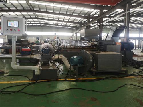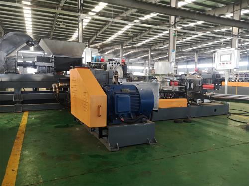 低煙無鹵造粒機設備特點:這套設備主機是環(huán)保型;主機設備不需要接外循環(huán)水系統(tǒng);自帶循環(huán)冷卻統(tǒng)是我公司發(fā)明專利產(chǎn)品(發(fā)明專利號:CN201911312134.6)1.最大好處:主機0水排放;無水污染;環(huán)保好過2.雙螺桿齒輪箱冷卻采用:采用環(huán)保冷卻系統(tǒng)(環(huán)保型:發(fā)明專利號:CN201911312134.6)不需要接外循環(huán)水冷卻,不用徘外水;采用閉環(huán)循環(huán)系統(tǒng),不用擔心長時間使用水冷卻會產(chǎn)生水垢把冷卻器堵住,導致齒輪箱損壞3.雙螺桿主機水箱冷卻系統(tǒng)采用:采用環(huán)保冷卻系統(tǒng)(環(huán)保型:公司發(fā)明專利號:CN201911312134.6)不需要接外循環(huán)水冷卻,不用徘外水;低煙無鹵造粒機采用閉環(huán)循環(huán)系統(tǒng)4.單螺桿主機水箱冷卻系統(tǒng)采用:采用環(huán)保冷卻系統(tǒng)(環(huán)保型:公司發(fā)明專利號:CN201911312134.6)不需要接外循環(huán)水冷卻,不用徘外水;采用閉環(huán)循環(huán)系統(tǒng)5. 節(jié)能:普通筒體筒體冷卻;例如:第5區(qū)溫度超高;這是電子閥導通;第5區(qū)冷卻回水就會影響第六區(qū)和第四區(qū)的溫度下降;就會導致第四六區(qū)加溫;這種情況會一直循環(huán)出現(xiàn);導致電費浪費;我們現(xiàn)在采用環(huán)保型就徹底解決這個問題;我們設備比同類設備節(jié)能:10-15%電費6.減少成本:水池尺寸:3米*3米*2.5米冷卻水池;60立方冷卻水塔及4KW高壓水泵2臺及管道,6天水管施工,大概能節(jié)約成本:12萬左右